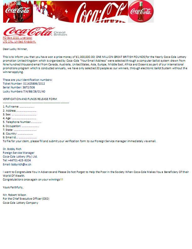 Coca Cola Lottery Pty Ltd. - fake lottery prize