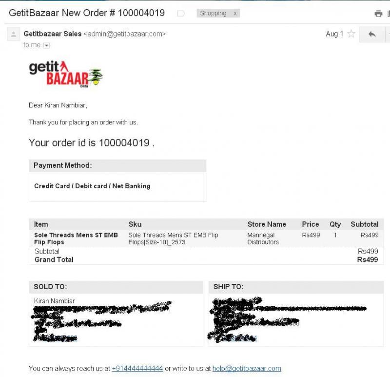This is regarding the product order ID 100004019, a pair of flip flops ordered through the company's shopping site. I was called by an executive from getitbazaar almost 2 weeks back informing me that the product ordered is not available in stock and the full amount made for the payment, Rs.499 will be refunded into my bank account within 7 days. Had given complaint regarding the same at the customer care number provided too, where I was promised that a call-back would be arranged to me within 24 hours, but the same never happened. The product was ordered on 1st August, but the refund has not yet been made by the company. pls look into the same and help me get a speedy solution/ refund.